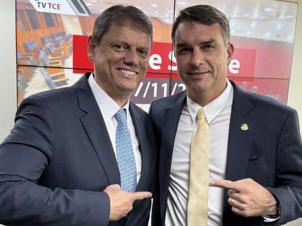 Governador Tarcísio de Freitas e o senador Flávio BOLSONARO